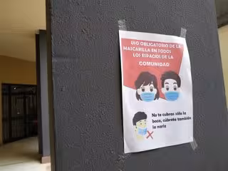 Cartel que recuerda la obligatoriedad de llevar puesta la mascarilla en los espacios de la comunidad de propietarios - EUROPA PRESS