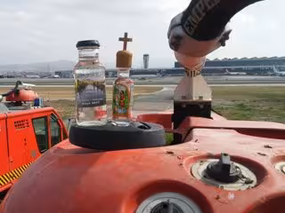 En esta ocasión, el líquido que salía de los vehículos del servicio de extinción de incendios llevaba aguas de los ríos Guadalhorce y Jordán, como símbolo de unión de ambos destinos, según han destacado desde Aena.