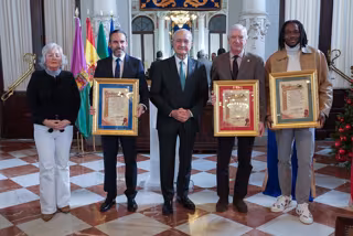 El alcalde de Málaga, Francisco de la Torre, junto a la concejala delegada de Fiestas, Teresa Porras, ha hecho entrega este miércoles de los nombramientos a los representantes de Sus Majestades los Reyes Magos de Oriente en la cabalgata de la ciudad del próximo 5 de enero. El acto se ha celebrado en el salón de los Espejos del Ayuntamiento.