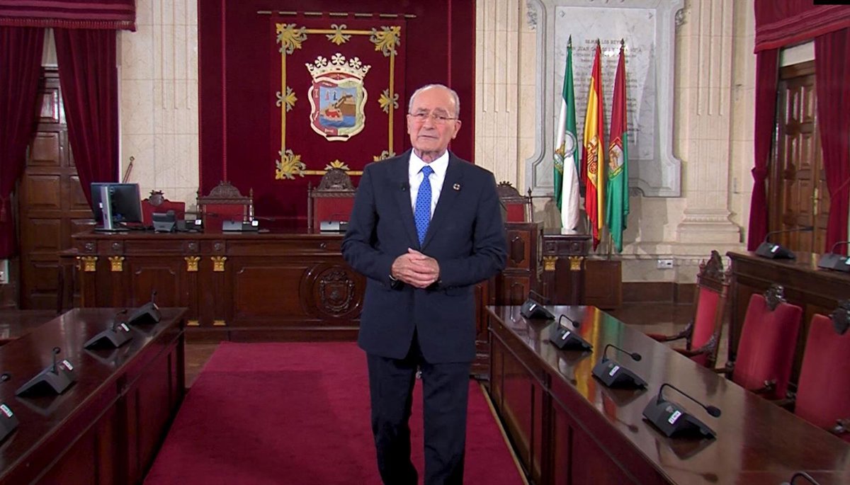 El alcalde de Málaga, Francisco de la Torre, durante su mensaje de Navidad 2019 - AYUNTAMIENTO DE MÁLAGA - Archivo