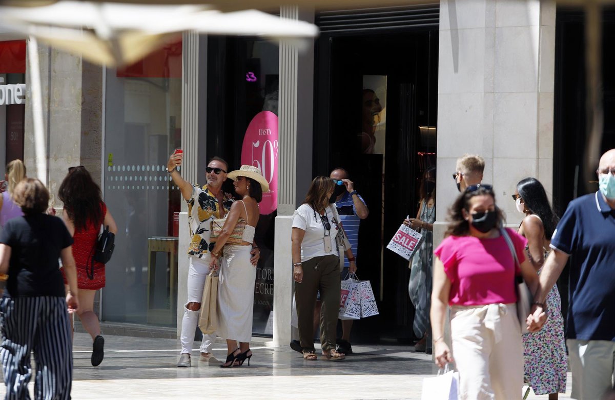 Personas sin mascarilla y otras con mascarilla en la calle Larios, durante el primer día en el que no es obligado el uso de la mascarilla en exteriores desde el inicio de la pandemia, a 26 de junio de 2021, en Málaga (Andalucía), España. El 30 de marzo - Álex Zea - Europa Press