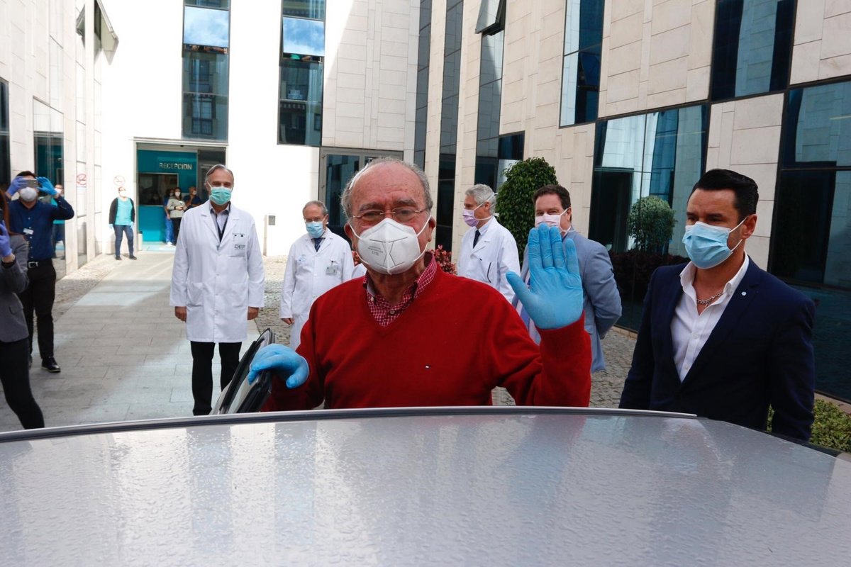 El alcalde de Málaga, Francisco de la Torre, sale sonriente del hospital donde fue intervenido el sábado 11 de abril de un hematoma subdural crónico. (Málaga, a 14 de abril de 2020) - ÁLEX ZEA/EUROPA PRESS