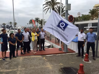 La alcaldesa y responsable municipal de Medio Ambiente, Playas y Puertos ha izado este jueves la Bandera Azul y la de 'Q de Calidad' del Puerto Deportivo, dos distintivos, ha apuntado, que "avalan la excelencia de los servicios que presta la zona portuaria y certifican su gestión medioambiental".
