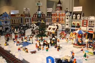 La escena con piezas de Lego, que puede visitarse de forma gratuita, recrea la Navidad con todo lujo de detalles. Ocupa una superficie aproximada de tres metros de longitud y consta de edificios de estilo victoriano y de una zona de parque nevado con un lago y cabañas de madera.