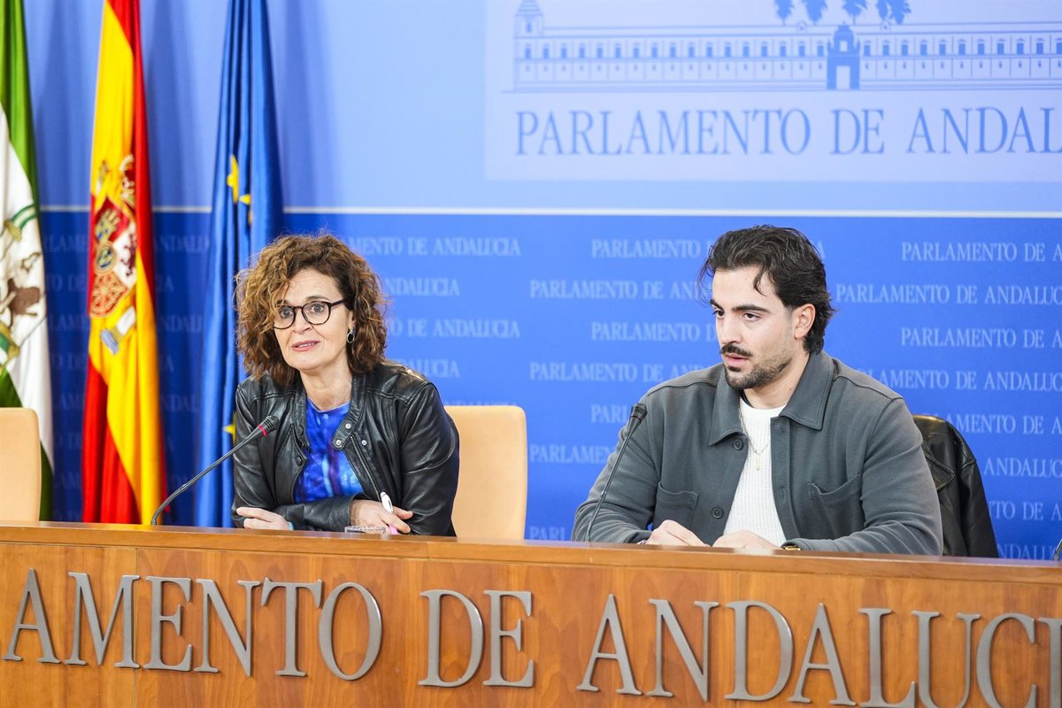 Los diputados del Grupo Por Andalucía Esperanza Gómez y Jose Manuel Gómez Jurado, este miércoles en rueda de prensa. - Joaquín Corchero - Europa Press