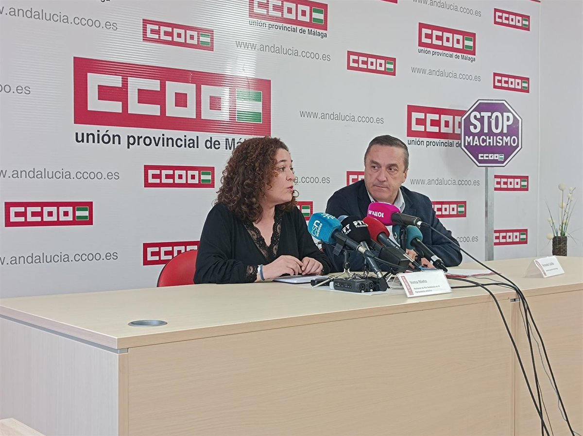 Inma Nieto, portavoz de Por Andalucía, y Fernando Cubillo, secretario general del CCOO Málaga, en rueda de prensa - EUROPA PRESS