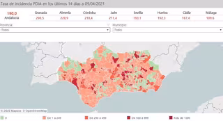 Mapa de Andalucía con nivel de incidencia de Covid-19 por municipios a 9 de abril de 2021 - JUNTA DE ANDALUCÍA