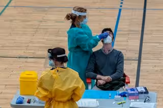Sanitarios trabajando durante las pruebas de cribado de covid-19 con test de antígenos en el pabellón deportivo de 'El Paraguas'. En Sevilla (Andalucía, España), a 28 de octubre de 2020. - Eduardo Briones - Europa Press