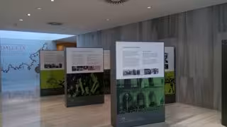 Este proceso se recoge en 14 paneles de gran formato cuyo contenido se ilustra con recursos gráficos entre los que se encuentran fotografías de la época, carteles y reproducciones de documentos históricos.