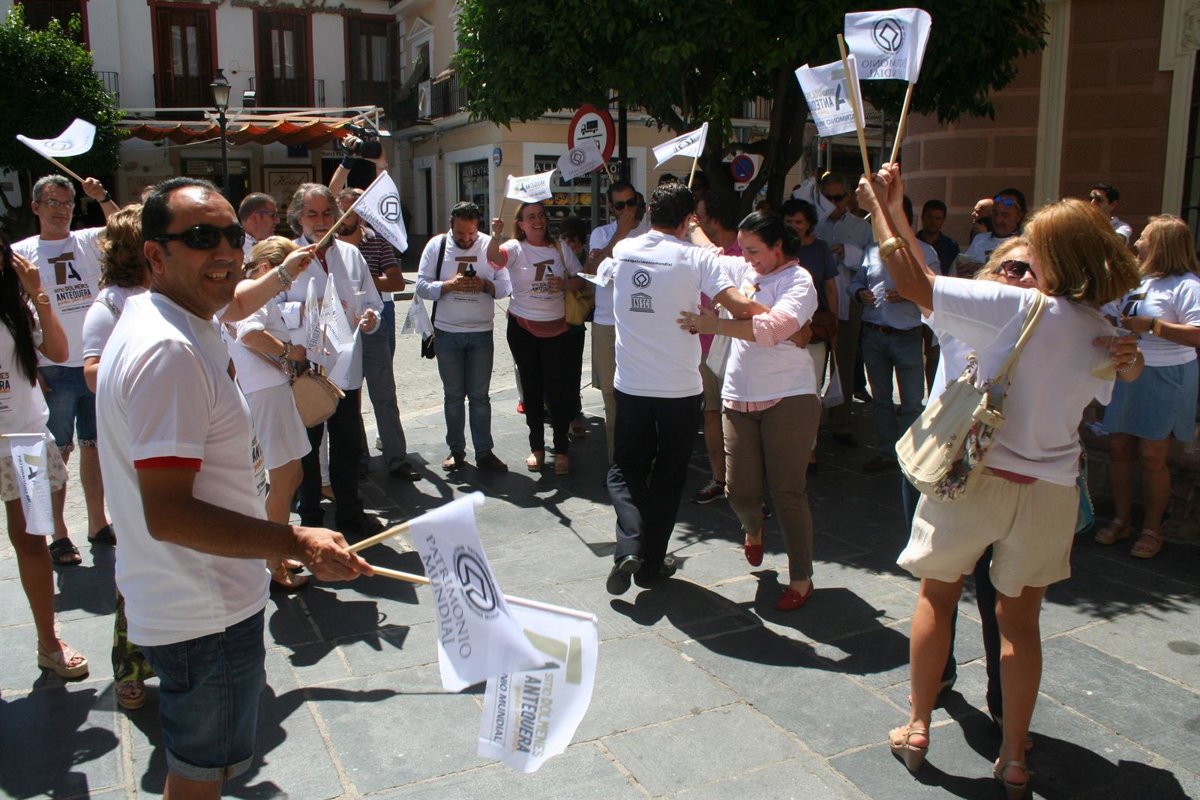 El municipio malagueño de Antequera ha celebrado la declaración de Los Dólmenes como Patrimonio Mundial de la Unesco. Aplausos, abrazos y música han protagonizado los momentos posteriores a la decisión definitiva de la organización internacional.