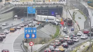 Un aparatoso accidente en la MA-20 en el falso túnel de Carlos Haya deja un gran camión cruzado en la calzada y tráfico lento en la zona. - PERFIL OFICIAL EN 'X' DE LA DGT
