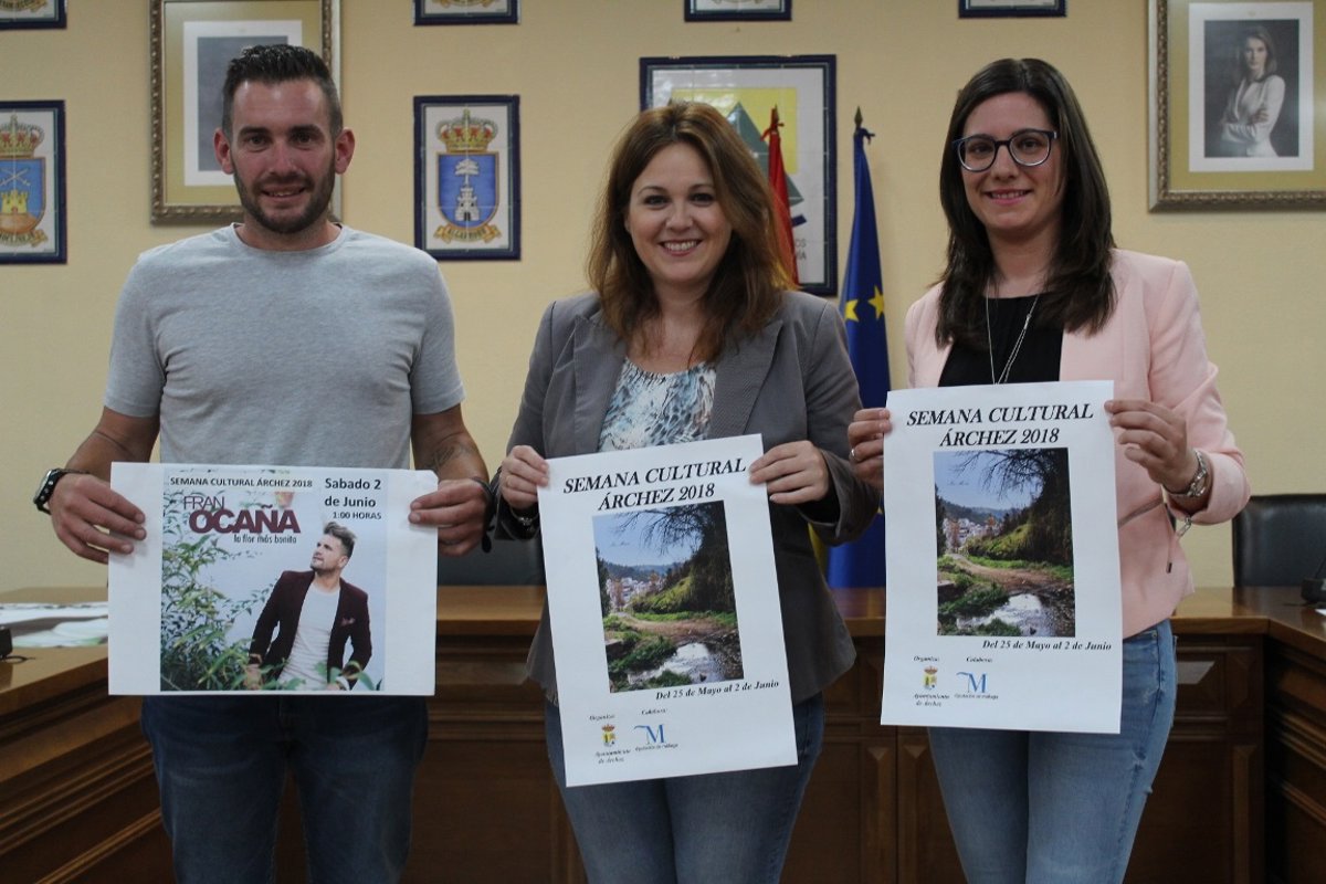 La vicepresidenta segunda de la Mancomunidad de Municipios de la Costa del Sol Axarquía, Natacha Rivas; la alcaldesa de Árchez y el teniente de alcalde Rubén Ariza han presentado este miércoles la Semana Cultural, que tendrá lugar desde el viernes 25 de mayo al 2 de junio.
