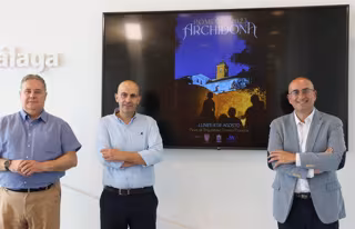 El vicepresidente de Cultura, Educación y Juventud, Manuel López Mestanza; el alcalde de Archidona, Manuel Almohalla, y el hermano mayor de la Cofradía matriz de la Virgen de Gracia, Fernando Morales, en rueda de prensa - DIPUTACIÓN