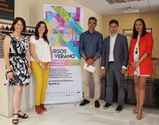 El Ayuntamiento de la Benalmádena ha acogido este jueves el acto de presentación de esta oferta estival, con la participación del vicerrector de Innovación Social y Emprendimiento de la UMA, Rafael Ventura; el alcalde de la localidad, Víctor Navas; la directora de Formación de la Fguma, Elsa Álvarez; la concejala de Juventud y Festejos de Benalmádena, Ana Sherman, y la directora de Oficina Banco Santander en dicho municipio, Laura Macías.