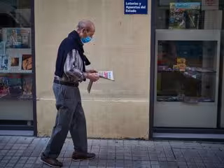 Un hombre camina con mascarilla leyendo un periódico - Eduardo Sanz - Europa Press - Archivo