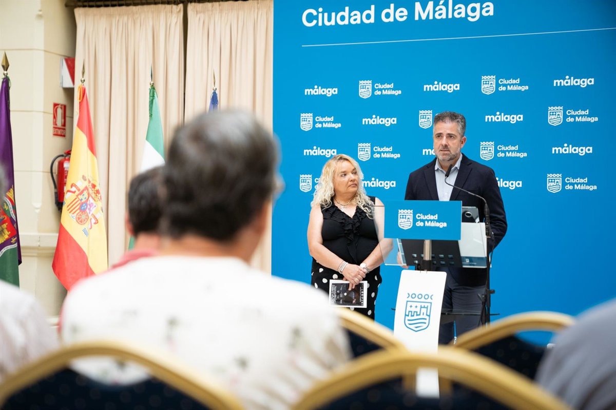 El concejal delegado del distrito Este, Carlos Conde, junto a la presidenta de la Asociación de Vecinos de El Palo, Mercedes Pírez, ha presentado este jueves el programa del festival.