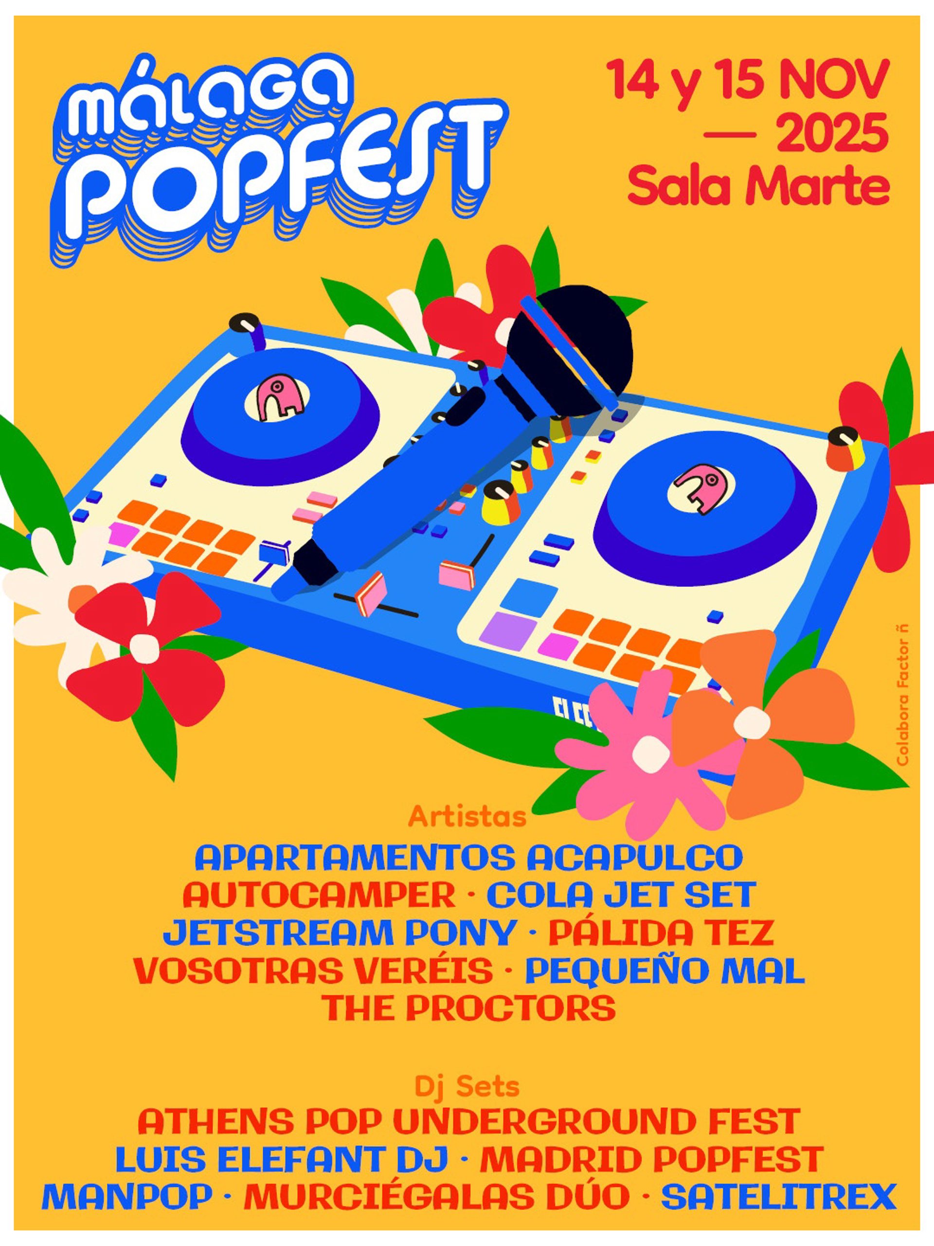 El Málaga Popfest 2025 celebra su séptima edición este 14 y 15 de noviembre en la Sala Marte. Las bandas inglesas The Proctors, Autocamper y Jetstream Pony pondrán la nota internacional a un cartel que albergará también los directos de las nacionales Cola Jet Set, Apartamentos Acapulco, Vosotras Veréis, Pálida Tez y Pequeño Mal.