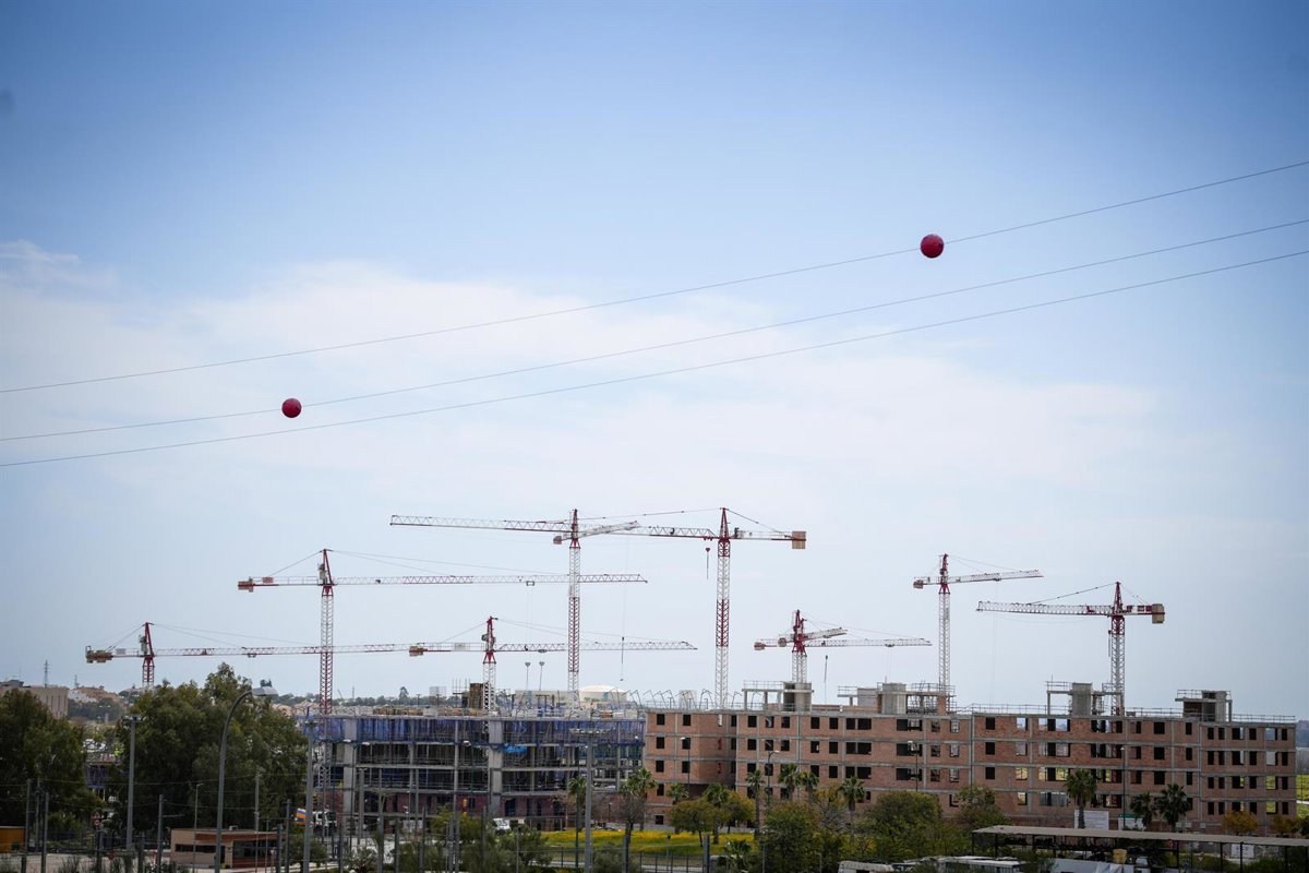 Archivo - Grúas en Málaga en una imagen de archivo - AYUNTAMIENTO - Archivo