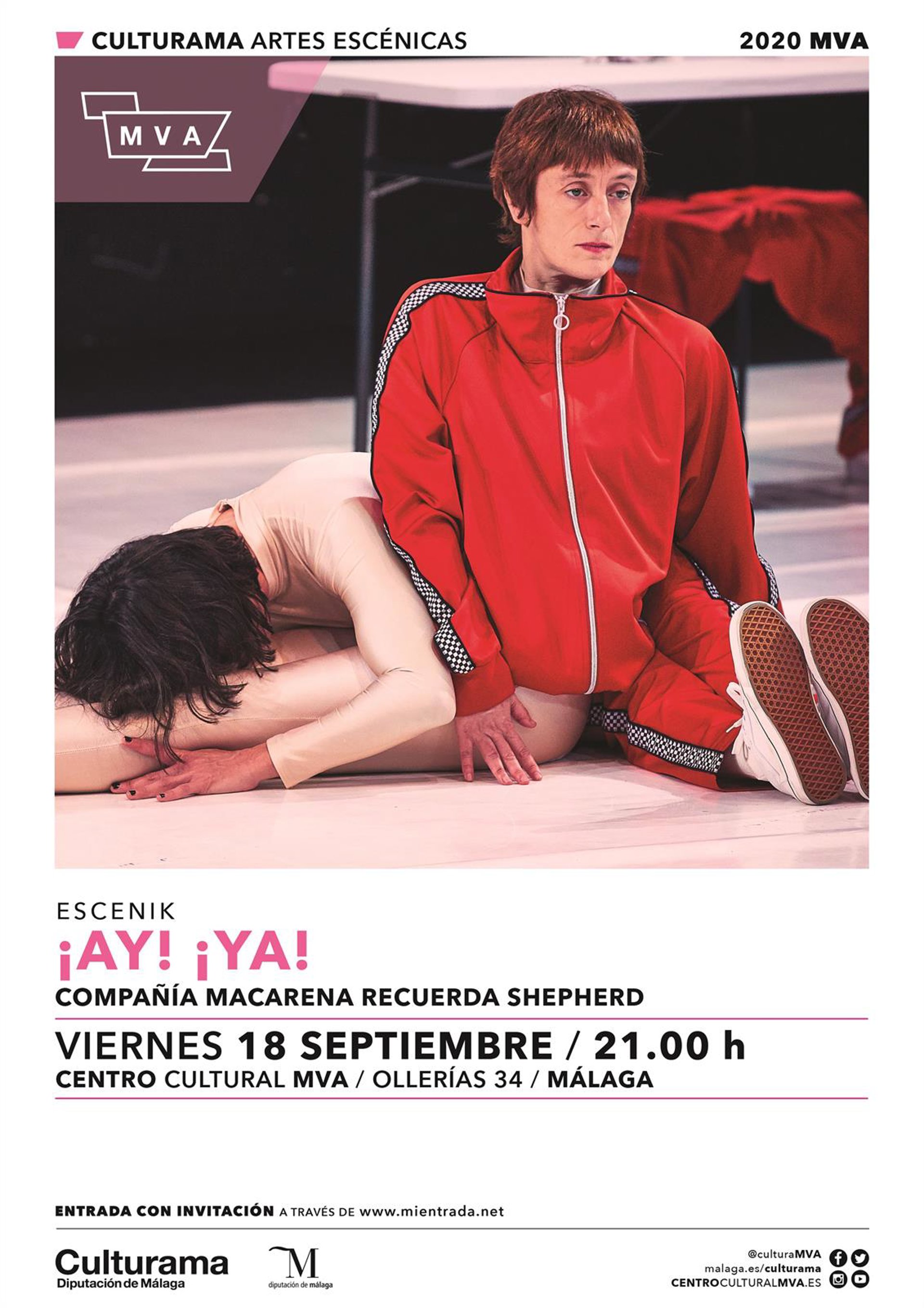 El ciclo Escenik de la Diputación de Málaga presenta la próxima semana '¡Ay! ¡Ya!' de la compañía de Macarena Recuerda Shepherd el viernes 18 de septiembre; y, la obra teatral 'Lázaro de Tormes' de Pata Teatro el sábado 19. Ambas representaciones serán a las 21.00 horas en Nuevas propuestas de artes escénicas este mes de septiembre en el MVA.