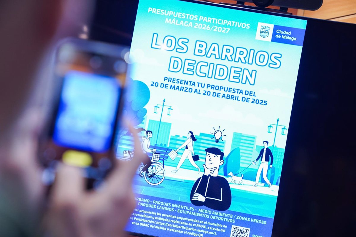 El Ayuntamiento de Málaga aumenta la partida para las propuestas ciudadanas de los presupuestos participativos hasta los 2,8 millones de euros para los años 2026 y 2027.