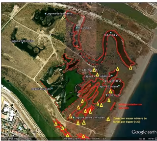 En la segunda semana de abril fue preciso reforzar el tratamiento ya sólo en las lagunas saladas más próximas a la playa y en las últimas dos semanas sólo ha sido preciso aplicar larvicida en los puntos exteriores al paraje mencionados.
