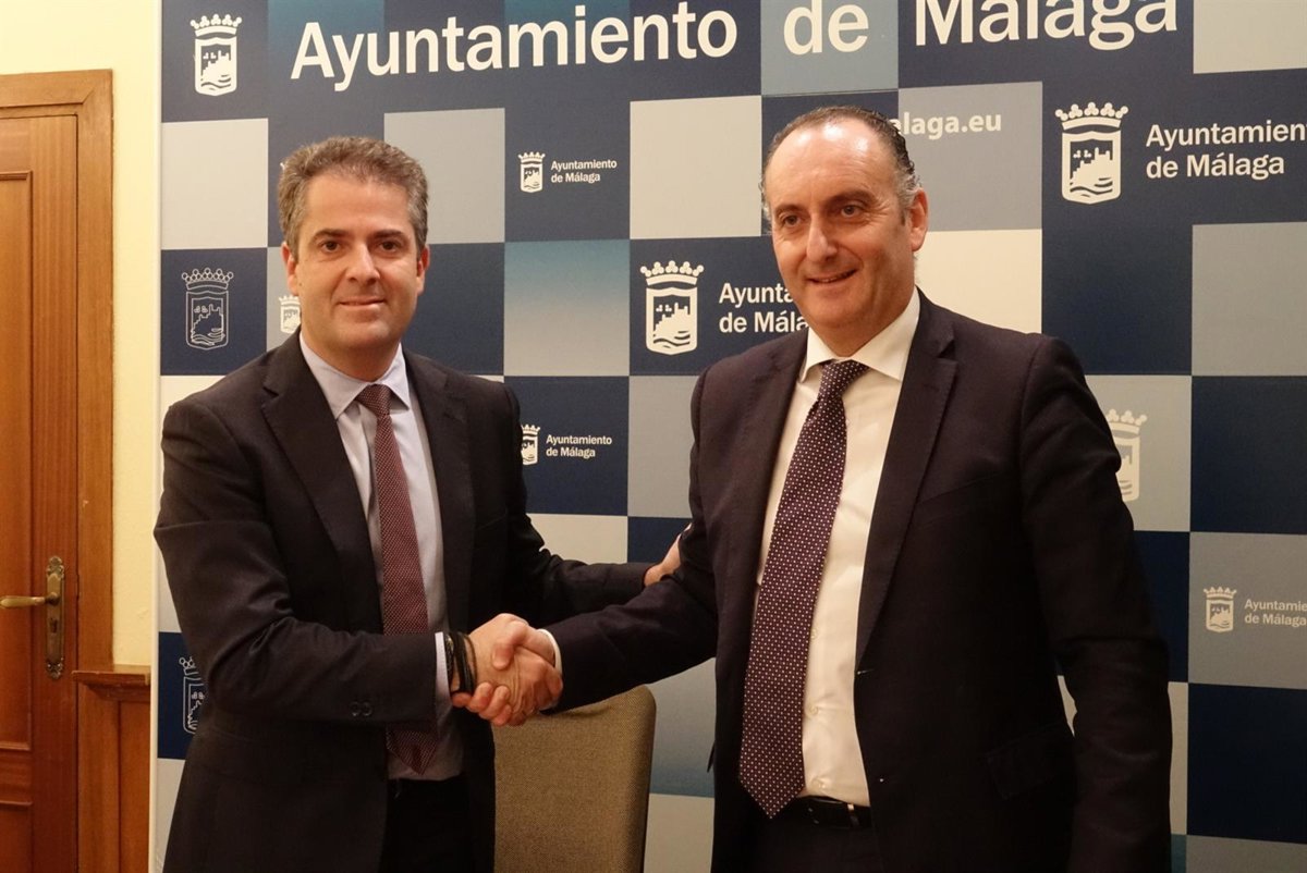 Carlos Conde, concejal de Economía (i) y Roberto Ducay, director financiero y de expansión de la Sociedad Estatal Correos y Telégrafos, S.A., S.M.E. - AYTO DE MÁLAGA