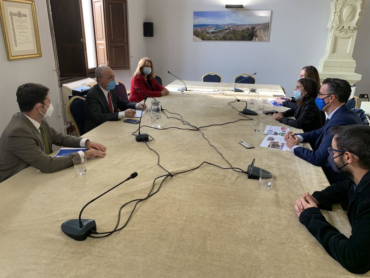 El alcalde de Málaga, Francisco de la Torre, ha mantenido un encuentro con Daniela Petrovic, CEO de Darwin Innovación; María Jesús Almazor, CEO de Ciber&Cloud de Telefónica Tech; Joaquín Segovia, director del Territorio Sur de Telefónica España, y Sergio de los Santos, jefe de Innovación y Ciberseguridad de Telefónica Tech, en el que ha conocido la propuesta de vehículo autónomo que esta empresa ya ha puesto en marcha en Oxfordshire.