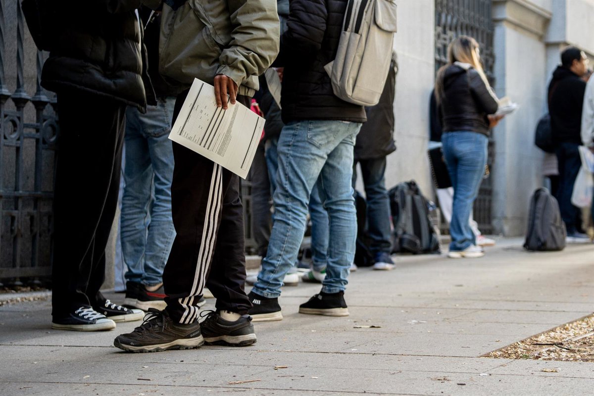 Imagen de archivo de personas en cola para tramitar la regularización extraordinaria de migrantes impulsada por el Gobierno. - Gabriel Luengas - Europa Press