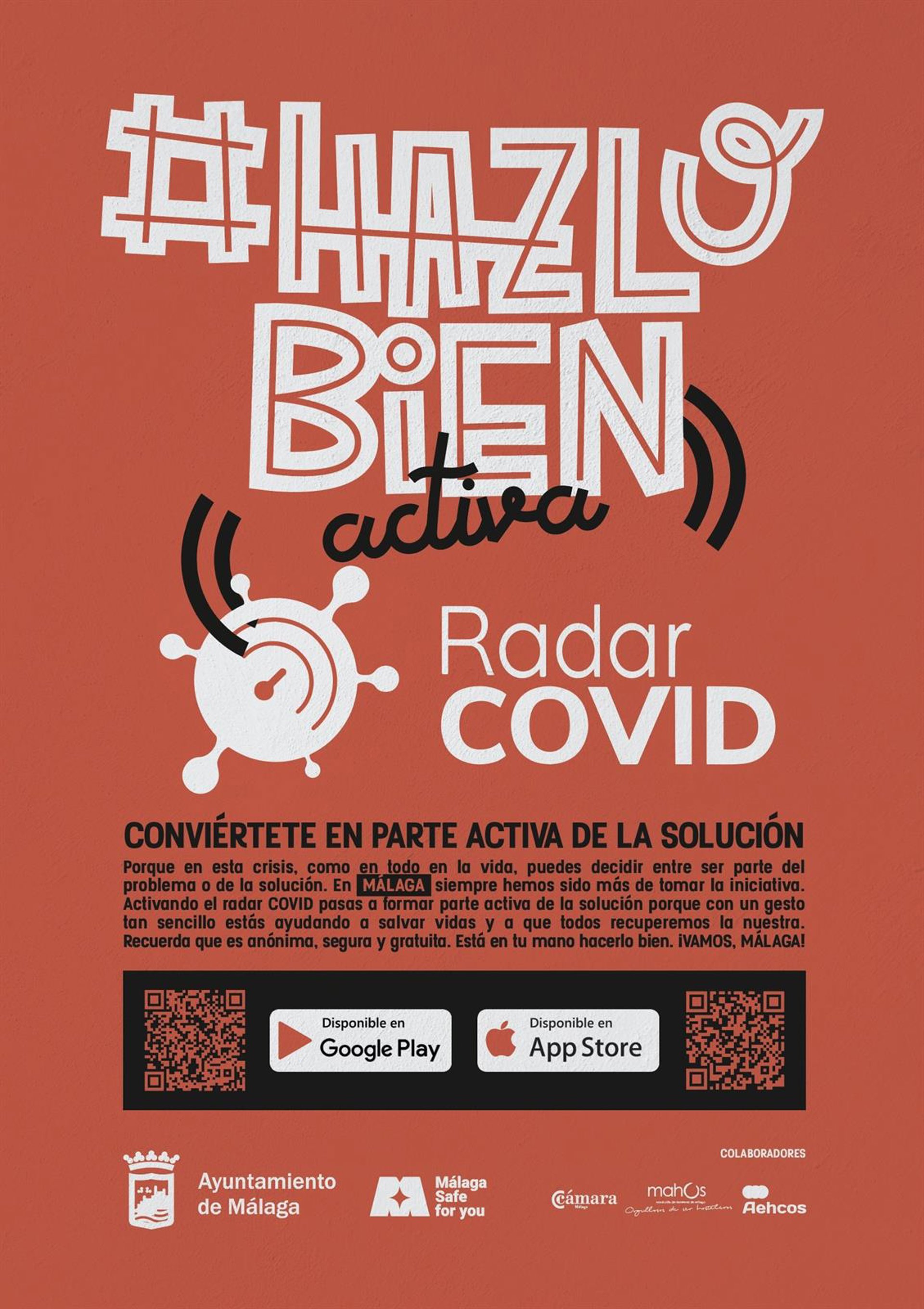 El Ayuntamiento de Málaga pide la colaboración ciudadana en la lucha contra la propagación del coronavirus y ha lanzado la campaña de comunicación 'Hazlo Bien, activa Radar Covid' para fomentar el uso de esta aplicación, que ayuda al control de los contagios mediante un sistema de rastreo a través de los dispositivos móviles personales.