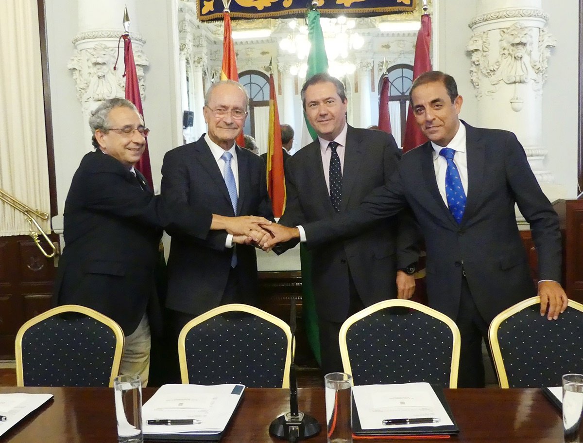 Así, han firmado el convenio en el marco del denominado Eje Sevilla-Málaga el alcalde de Málaga, Francisco de la Torre; el regidor de Sevilla, Juan Espadas, y los rectores de la UMA y la US, José Ángel Narváez y Miguel Ángel Castro, respectivamente.