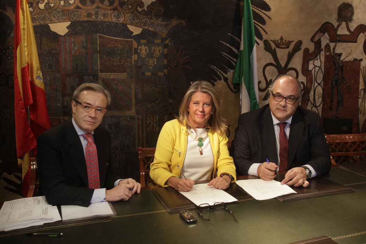 La alcaldesa de Marbella (Málaga), Ángeles Muñoz, ha firmado este viernes, en el Ayuntamiento y ante notario, con Carlos del Campo, representante de la Liga de Fútbol Profesional (LFP), la permuta para recuperar la titularidad del cementerio Virgen del Carmen.