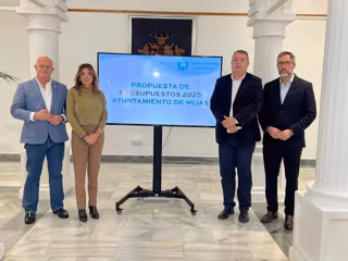 La alcaldesa de Mijas (Málaga), Ana Mata, junto a los tenientes de alcalde Juan Carlos Cuevas y Juan Carlos Maldonado, así como el concejal de Economía y Hacienda, Mario Bravo, han presentado este miércoles la propuesta de presupuestos para 2025 que se llevará para su aprobación inicial en el pleno municipal extraordinario del 17 de enero.
