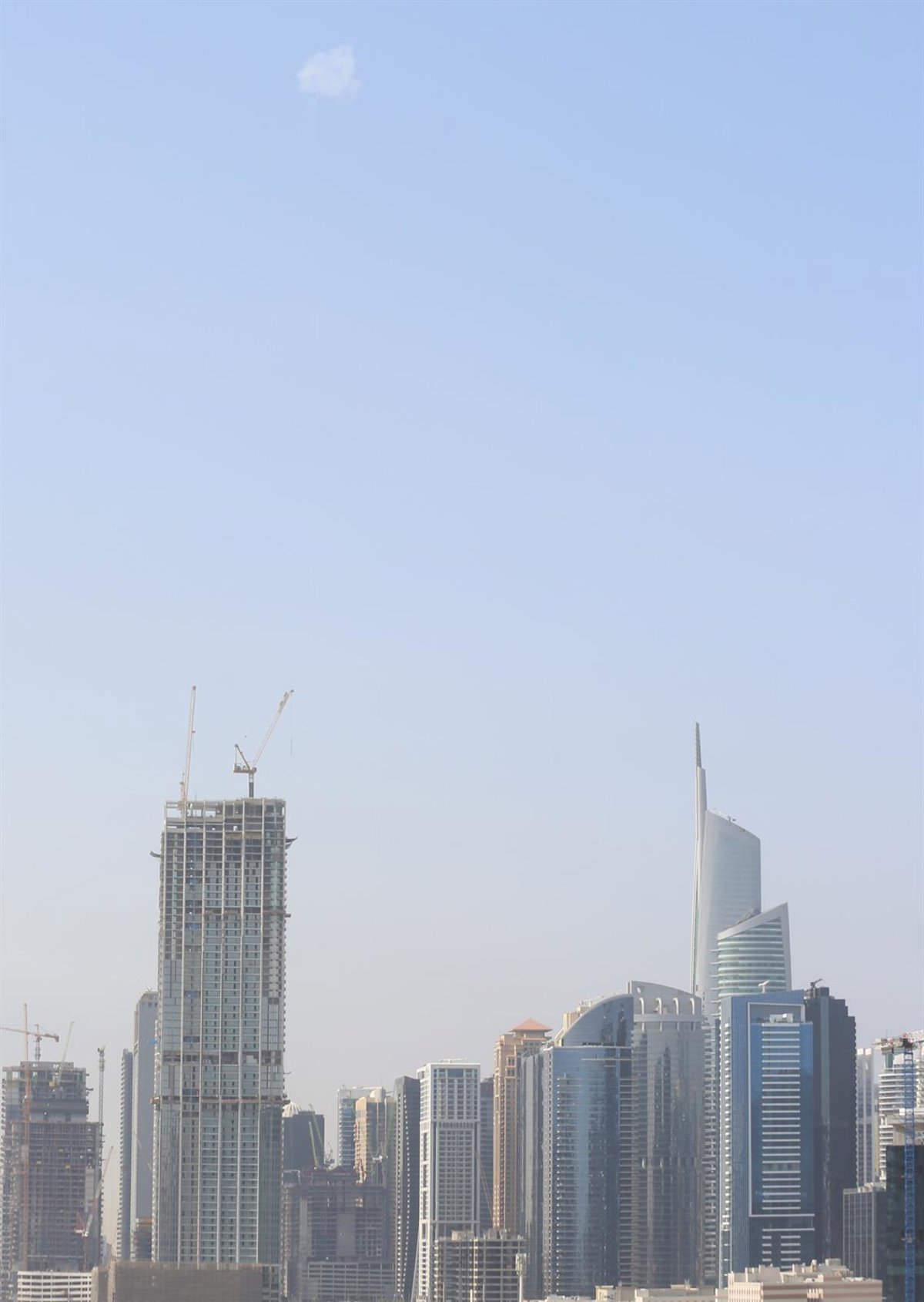 This photo taken on March 1, 2026 shows a view of the sky over Dubai, the United Arab Emirates (UAE). The UAE Ministry of Defense said on Saturday that its air defense systems had intercepted and destroyed a new wave of Iranian missiles and drones. - Wen Xinnian / Xinhua News / ContactoPhoto