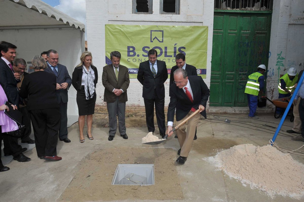 El alcalde de Málaga, Francisco de la Torre, acompañado por el director general de Ingesport Health&Spa Consulting, Gabriel Sáez, y de varios concejales, han asistido este lunes a la colocación de la primera piedra de este centro deportivo en el antiguo cuartel de Segalerva, adquirido al Ministerio de Defensa por el Ayuntamiento por unos tres millones de euros.