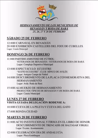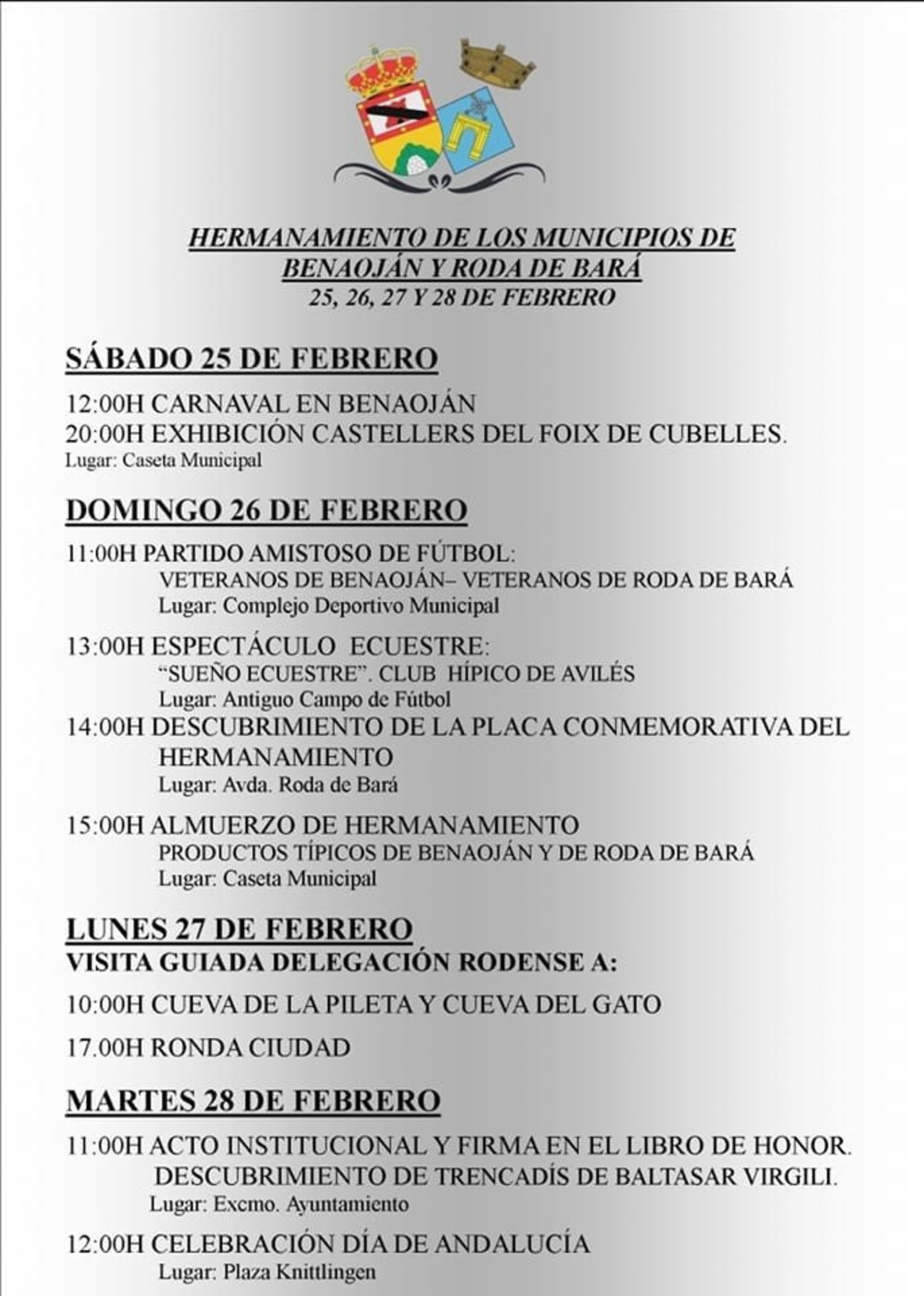 Programa de actividades para celebrar el hermanamiento entre Benaoján (Málaga) y Roda de Bará (Tarragona). - AYUNTAMIENTO DE BENAOJÁN