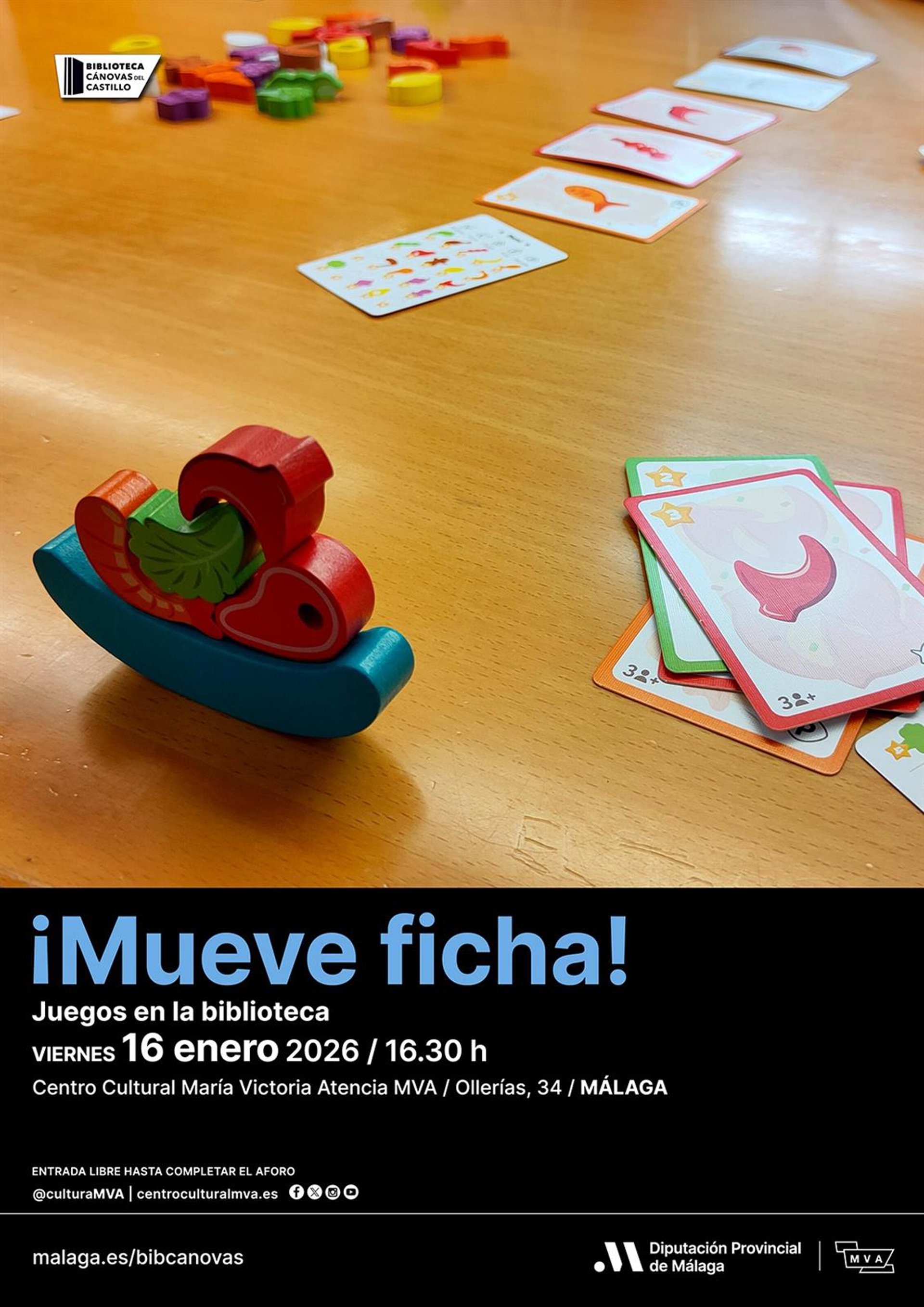 Por otro lado, las sesiones de juegos de mesa '¡Mueve ficha', con Lex Ludi Malacitana, son otras de las actividades de la biblioteca, planteadas como espacios de aprendizaje y encuentro para todas las edades y colectivos. Se desarrollarán los viernes 16 de enero, 13 de febrero, 13 de marzo, 17 de abril y 15 de mayo.