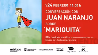 El viernes 24 de febrero, a las 11.00 horas, MaF 2023 se traslada a la biblioteca José Moreno Villa gracias al encuentro con el escritor y traductor Juan Naranjo quien conversará con el alumnado de distintos institutos sobre 'Mariquita. Una historia autobiográfica sobre la homofobia', libro en el que Naranjo narra, en primera persona, el proceso de acoso escolar al que estuvo sometido por su homosexualidad.