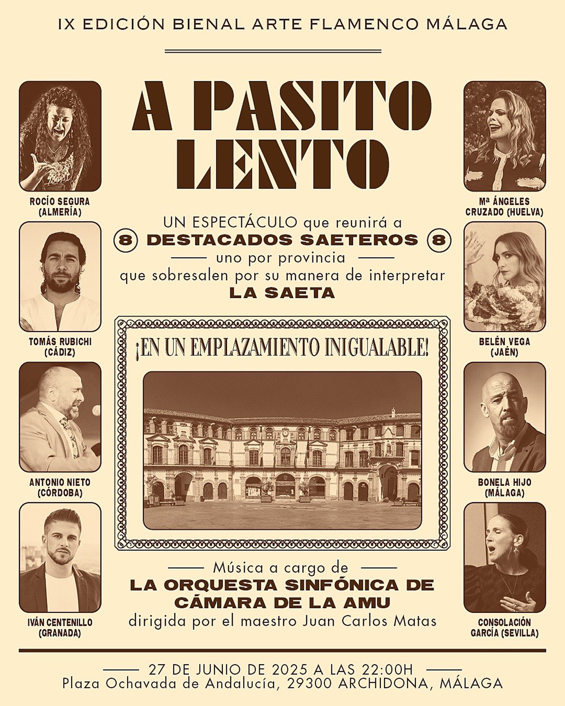 Por otro lado, este viernes, a partir de las 21.30 horas, la plaza Ochavada de Archidona acogerá 'A pasito lento', un espectáculo basado en la saeta como palo del flamenco.