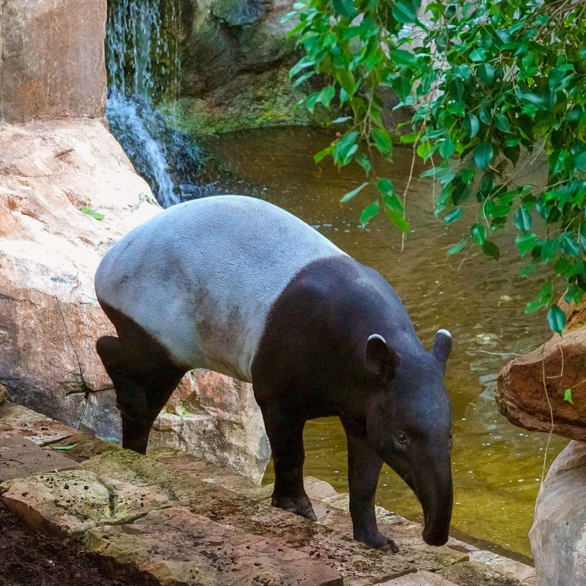 Bioparc Fuengirola es uno de los 23 zoos que trabaja en la conservación del tapir malayo dentro de la EAZA (Asociación Europea de Zoos y Acuarios), el único en España. El centro de malagueño alberga desde 2003 a la especie de tapir malayo. Se podría decir que es un fósil viviente, un extraño mamífero de unos 200 kilos que prácticamente se mantiene igual que sus ancestros de hace más de 55 millones de años y cuyos parientes más cercanos son el caballo y el rinoceronte.
