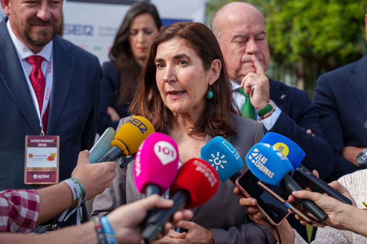 La consejera de Empleo, Empresa y Trabajo Autónomo, Rocío Blanco, atiende a los medios antes de intervenir en la inauguración de la 'ACEM SUMMIT 2026' en Antequera (Málaga). - Francisco J. Olmo - Europa Press