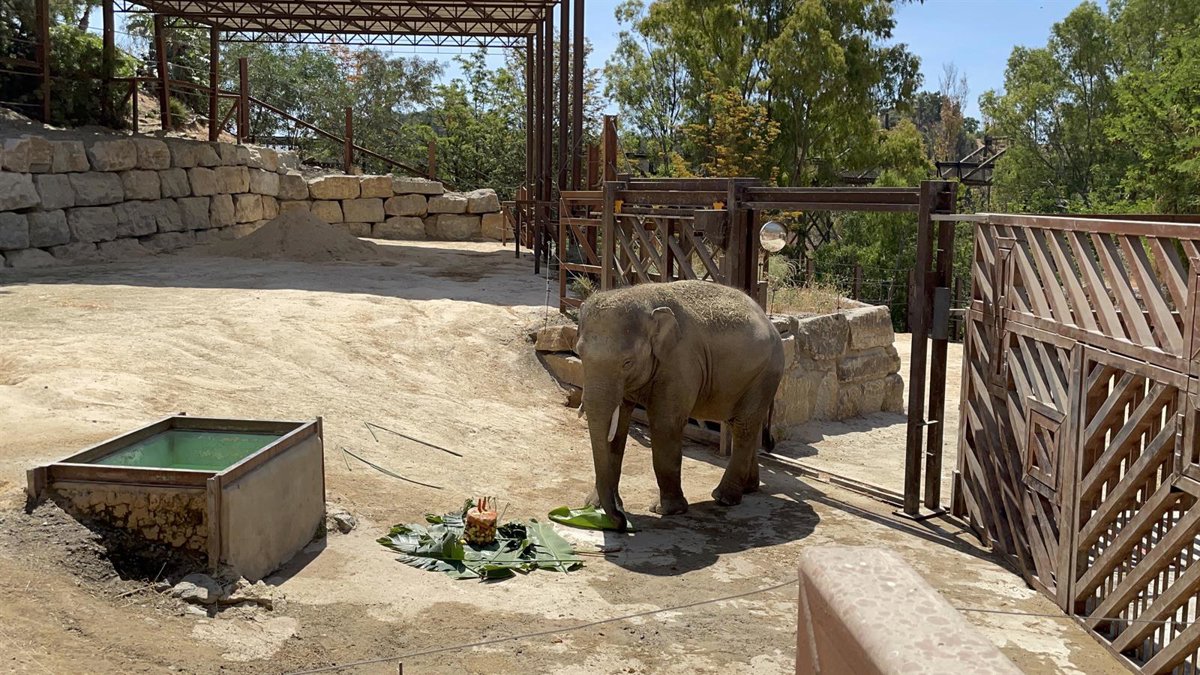 El equipo de Conservación al completo ha querido agasajarle con una tarta, e incluso le cantó el 'cumpleaños feliz'. Así, el elefante se ha adaptado perfectamente a su nueva vida en el zoológico de Estepona (Málaga).