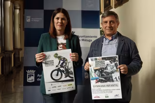 La concejala de Deporte, Noelia Losada, presenta la Bokeron Bike junto al director general de Deporinter, Joaquín Cuevas. - AYTO DE MÁLAGA