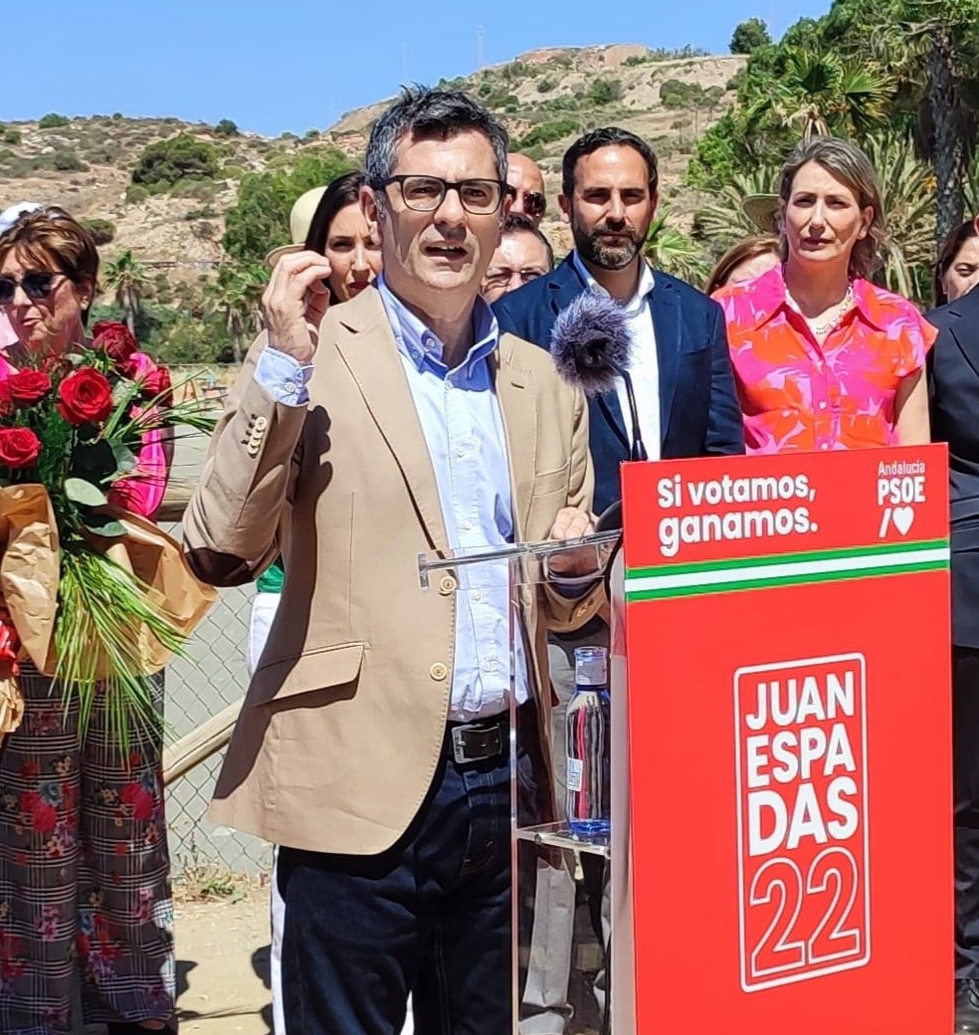 "Están ustedes en contra de todo, en contra de que bajemos la gasolina, en contra de que demos ayudas a los transportistas; eso es inaceptable", ha manifestado Bolaños en un acto del PSOE en Málaga dentro de la campaña por las próximas elecciones andaluzas del 19 de junio.