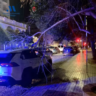 También sobre las 2.00 horas los bomberos fueron requeridos por la Policía Local para cortar y retirar una rama de árbol caída sobre un vehículo en la calle Policía Nacional con calle Dulcinea y luego para retirar unas luces de Navidad y toldos con peligro de caída en la avenida Mar y Sierra.