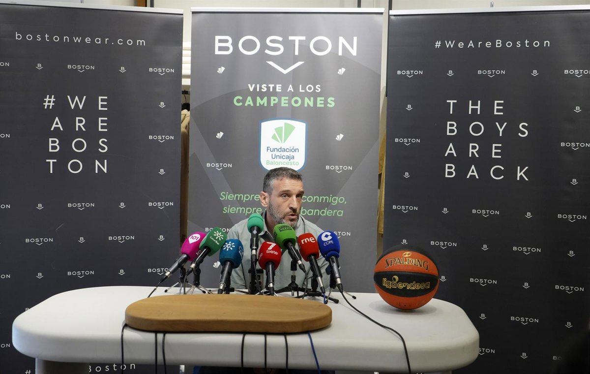 El entrenador del Unicaja, Ibon Navarro, ha comparecido en la centrica tienda de Boston en Málaga para hablar del primer partido de la eliminatoria de cuartos de final del Playoff de la Liga Endesa ante el BAXI Manresa en el Carpena. - BOSTON.