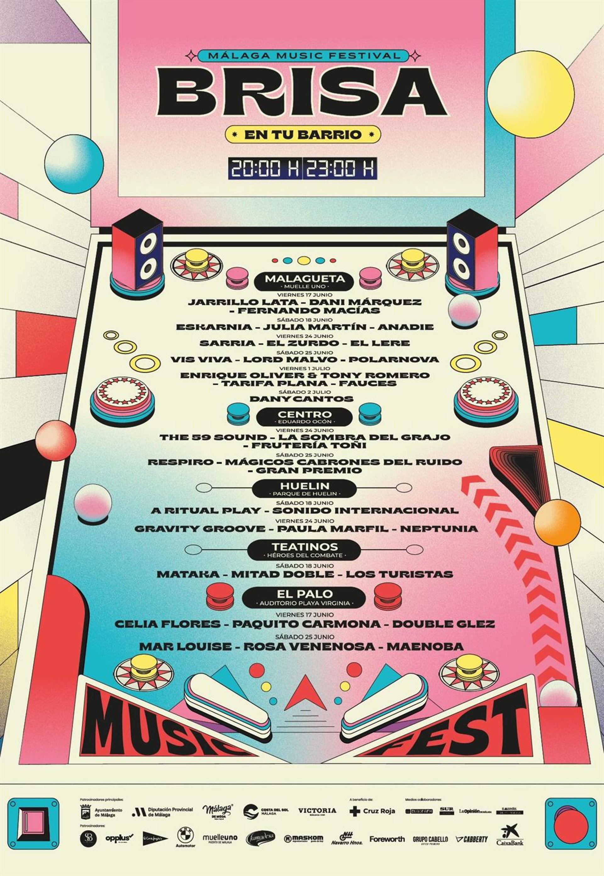 Brisa Festival se creó por y para las bandas malagueñas, y en esta segunda edición sigue apostando por los músicos emergentes a través de Brisa en tu Barrio. Este formato llenará las calles de la ciudad de música en directo de artistas de la provincia, a través de veladas musicales gratuitas para todos los públicos los días 17, 18, 24 y 25 de junio y 1 y 2 de julio.