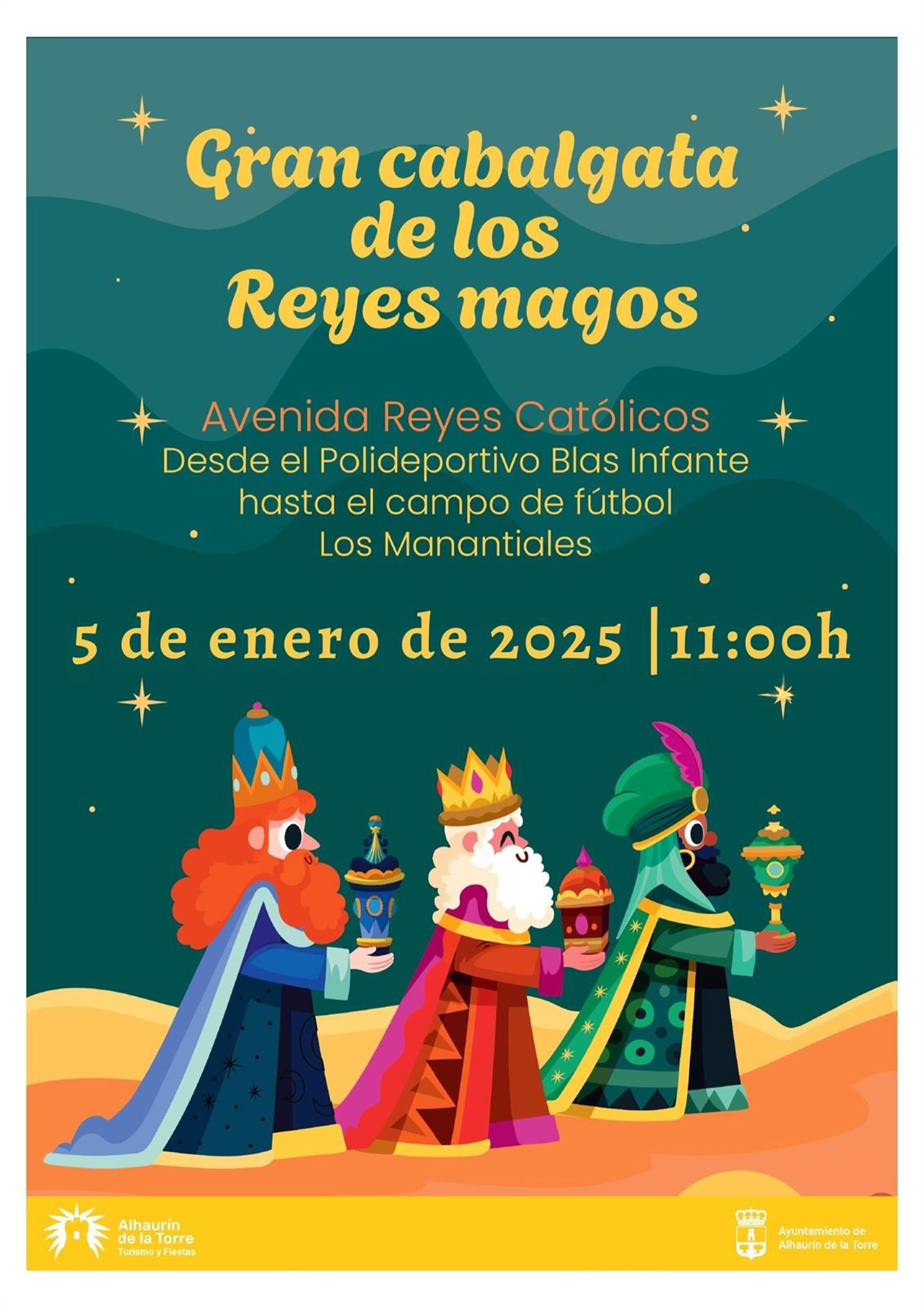 Por segundo año consecutivo la cabalgata de Reyes Magos de Alhaurín de la Torre volverá a discurrir íntegramente por una parte de la travesía urbana, desde el Polideportivo Cubierto Municipal Blas Infante, en la avenida Reyes Católicos, pasando por Cristóbal Colón y Europa hasta su final en la rotonda de la Biznaga, en la zona de La Capellanía.