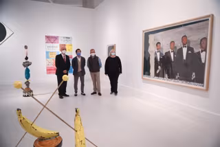 El Centro de Arte Contemporáneo (CAC) de Málaga ha presentado este viernes la exposición 'Gente conocida / Derecho a entrar', que recopila casi un centenar de obras realizadas durante los últimos 15 años de carrera del artista Miki Leal. Comisariada por Alberto Martín, la muestra reúne pinturas sobre papel y cerámicas relacionadas con samuráis, bodegones, jazz, tenis, cine, dandis, libros, paisajes, retratos o plátanos.