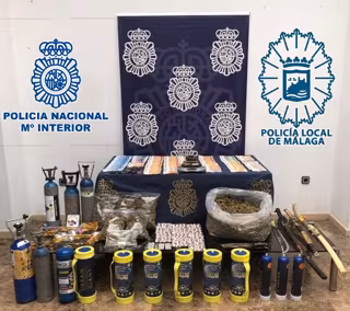 Agentes de la Policía Nacional y de la Policía Local de Málaga han desarticulado en la capital malagueña un entramado criminal dedicado a la venta y distribución de óxido nitroso y otras sustancias estupefacientes.
