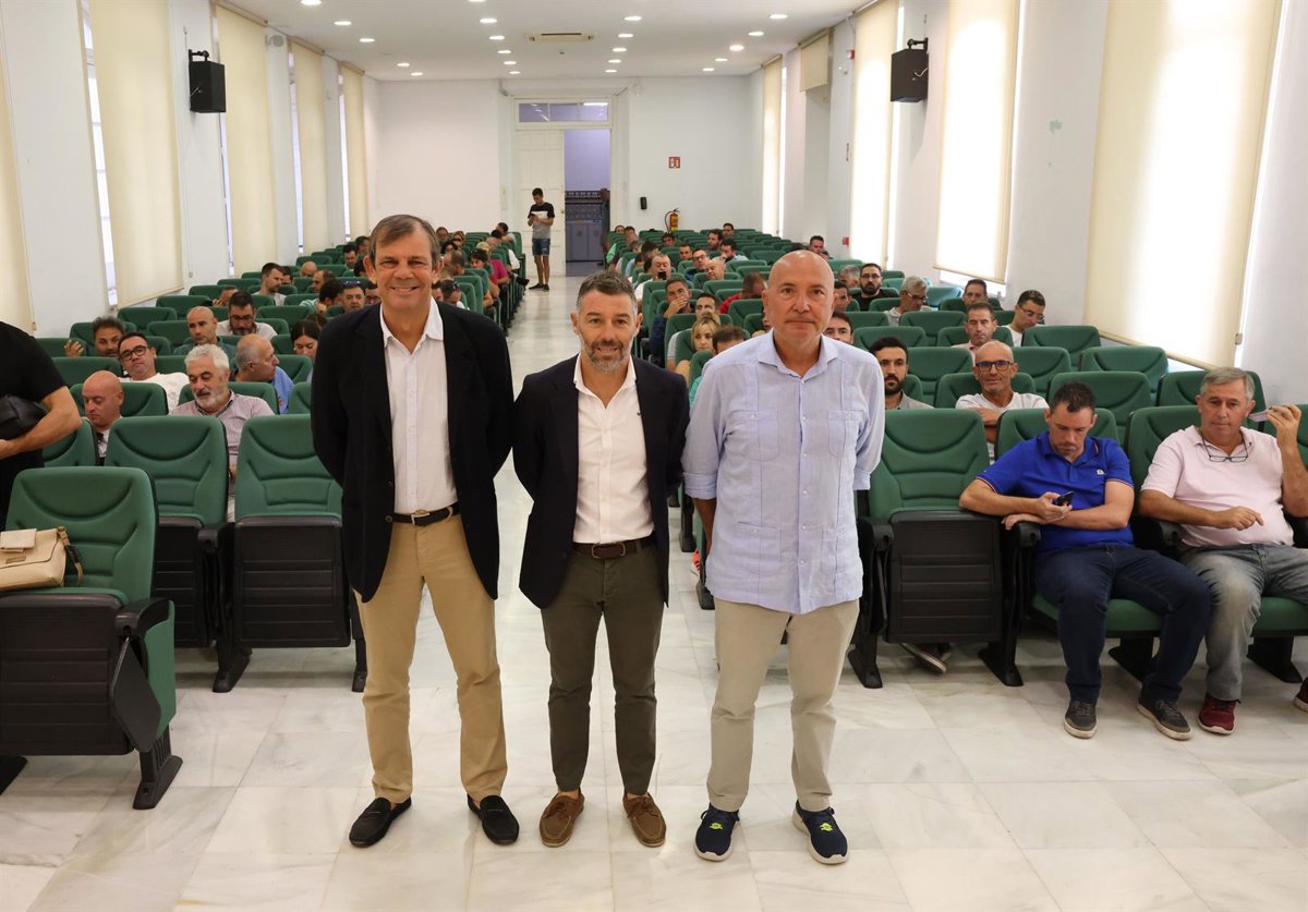El vicepresidente y diputado de Deportes, Juan Rosas, ha estado acompañado por el presidente del Unicaja Baloncesto, Antonio Jesús López Nieto, y el director deportivo, Juan Manuel Rodríguez. - DIPUTACIÓN DE MÁLAGA